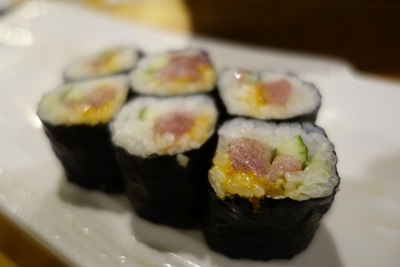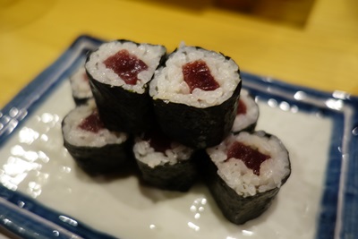 ここからもエビやとり貝、穴子、トロなどいただきました!巻物はトロときゅうりとウニがまいてあります。これも大好きです〜!