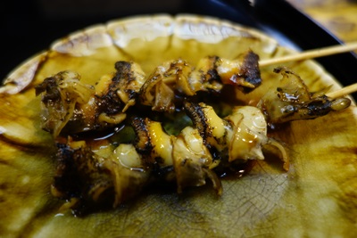 まずはつぶ貝をタレでいただきました!う〜ん!いい香り!一口いただくと、、、程よい火加減でおいしい〜〜〜!