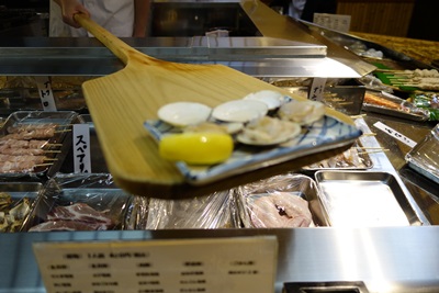 つづいてはまぐりを!炉端焼きですから大将が大きなしゃもじのようなもので出してくださいます。これ、海外からのお客様絶対に喜ばれると思いますよ〜!はまぐりもおいしい〜〜〜!