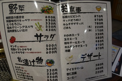 まずは生ビールをいただいて、野菜からお願いしました。味付きキャベツとムンチサラダです。お肉を食べる前にはやはりたくさん野菜をとったほうがいいですからね〜!