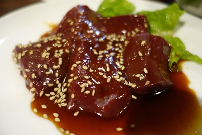 口直しにトマトサラダをいただいて、ここでレバーをお願いしました。おいしい焼肉屋さんにはおいしいレバーありっていいますからね〜。鉄分をしっかり補給です!