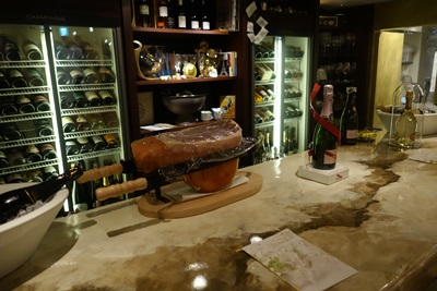 その中から私はペルドリという山うずらの眼という意味のシャンパンをお願いしました。ロゼ色のシャンパンだそうで、ロゼではないそうです。赤ワイン用のぶどうのみでつくられているそうです。おいしいですね〜!うっすらピンク色がついていました。