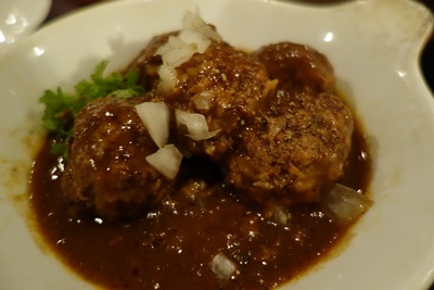 つづいてお願いしたのが、大人のミートボール!私は十分大人だと思われるのでお願いしてみました!登場したミートボールはとってもおいしそう!いただいてみると、、、軟骨がいいアクセントになっているんですよ〜!コリコリした触感がたまりませんね!