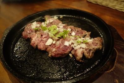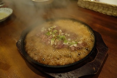 さっぱりしたしたとは、やはりぶると味特製のビフテキをいかなあかんでしょう!しかも大でおねがいしました。目の前に熱々の鉄板とお肉が!大将自らソースをかけてできあがり!いつものおいしさでした!