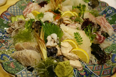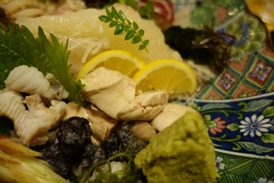 最初に登場するのはお刺身です!この日もすばらしいお刺身が登場しました!この日はいつものおこぜのお刺身とな、なんと!めばるのお刺身が登場!めばるってお刺身で食べれるんですか???一同おおおおっと声をあげちゃいました。