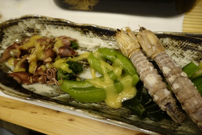 ガレージ?、、、あっ、車庫、、、シャコですね!食べますよ〜!ホタルイカとスナップえんどうとともに登場しました!さすがのおいしさ!今回は子持ち!!