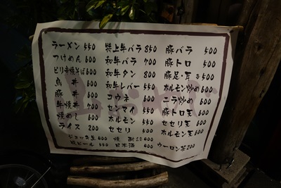 お店に到着すると、おや?山おやじさんですが、お店のドアにはラーメンと書かれています。お店に入るとこじんまりした小さな店内がなんともおちつく感じでいいですね〜!おすすめメニューと定番メニューをみながらいろいろお肉などをお願いしました。