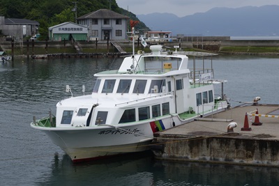そ、そうなんですか!なるほど!ということで、港の駐車場に車を止めて船に乗り込み出航〜!船で12分くらいとのことです。案外近い!娘は船の中からおおはしゃぎ!この日は午前中に雨をふったりやんだりしていましたが、大久野島に到着してからはまったく雨も降らずラッキー!