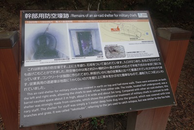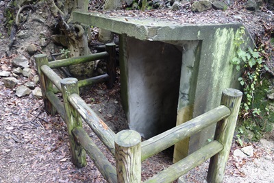 しばらく歩いて行くと、大久野島の過去を知ることができる施設があります。幹部用防空壕の跡がありました。