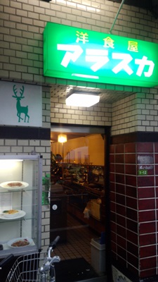 ということで先輩と10人ちょっとで集まってこちらのお店でゴチバトルやってみました〜!お店の名前は洋食屋のアラスカさんです。以前も何度かご紹介しておりましたが、流川のど真ん中で夜中まで営業されている洋食屋さんです。飲んだ帰りにアラスカさんのカツサンドを持って帰るのが定番となっております。