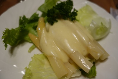 アスパラサラダもいただきましたよ〜!つづいて、チキンソテー!たっぷり野菜がついてきています!野菜にソテーのソースをかけていただきました!うまい!