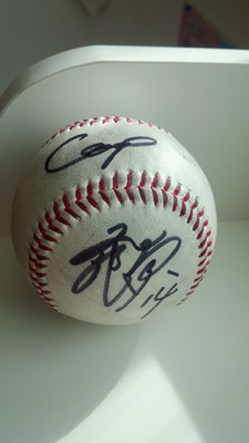 そして、、ゴチバトルの結果は、、、なんと見事私が優勝してしまいまして、、、商品は、、時の人大瀬良投手のサインボール!