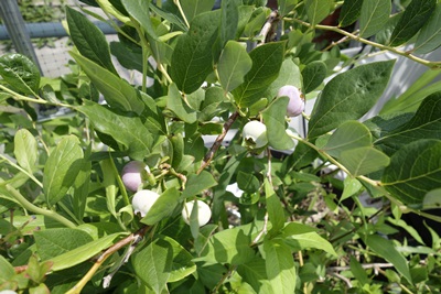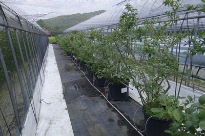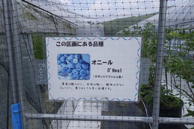 ブルーベリーハウスは3つ区画がありまして、まずはオニールという品種が育っているところに入りました。