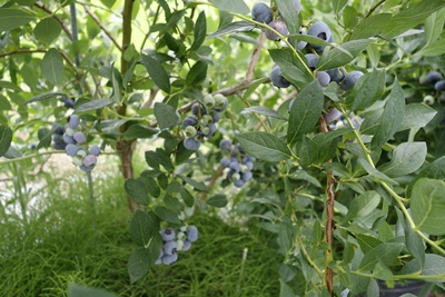 つづいて一番広い区画のところに入ってみると、こちらはとってもたくさんブルーベリーの実が実っていました。ケープフィアという品種をおいしくいただきながら、つづいてエチョータの区画に到着しました。