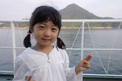 娘も船の上からの眺めを楽しんでいるようでした。この季節は夕暮れ時はまだ肌寒いので上着を持っていかれたほうがいいかもですね〜!