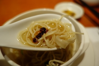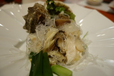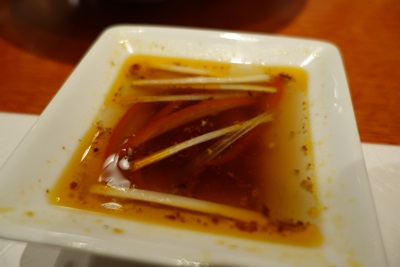 さて、先ほどご紹介いたしました香港海鮮料理のせがわさんの続きをご紹介いたします。見ても楽しい、そしてとってもおいしい手作りのお料理の数々をワンプレートで楽しんだあとに登場したのは、貝でした!たぶんニシ貝だったとおもいますが、ソテーしてありまして特製のラー油が入ったタレにつけていただきます。タレといいますか出汁といいますか、これが本当にうまい!貝の食感もほどよく残してあり、出汁と特製ラー油が抜群のコラボです!
