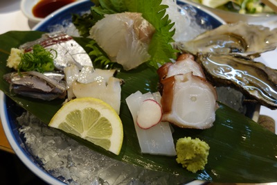 つづいてお刺身の盛り合わせをお願いしました!なんとアワビが入っていました!そして、ヴァージンオイスターの先端までも〜!当然おいしいお刺身でした!先端も最高!さすがです。