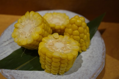 大将といろいろお話させていただいて、このお店のすばらしさを重ねて実感できました!ここで、とうもろこしが登場しました。私とうもろこし大好きです!