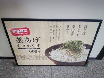 そして先日川口商店の目の前を通ると、、、なんとかまあげおんどちりめんののぼりが!なんと釜揚げ音戸ちりめんをイートインできるスペースができあがっていました!ということで15時くらいだったのですが、いただくことに〜!