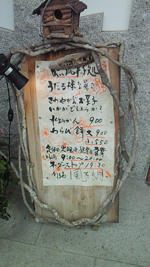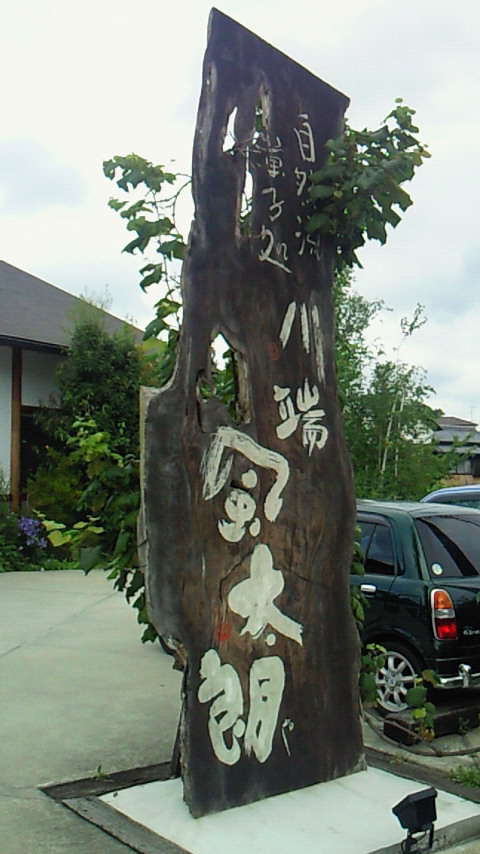 入り口には木を使った案内があります。