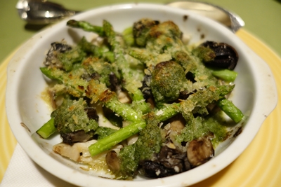 登場したグラタンをみて、アスパラがたっぷりのっかるじゃないですか〜!うれしい〜〜〜!野菜不足になりがちなので、特に緑の野菜はうれしいです。グラタンってホワイトソースがたっぷりかかっているイメージですが、こういうのもグラタンっていうんだ〜と勉強になりました。エスカルゴもとってもおいしい〜!いや〜大好物になりました!
