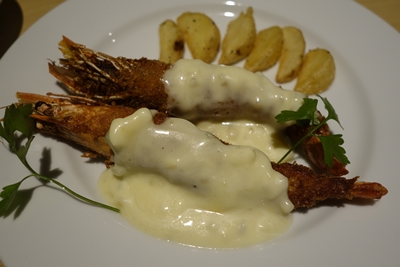 有頭エビフライが登場しました!さくっと揚がっていてこちらもおいしいです!タルタルソースもばっちし!
