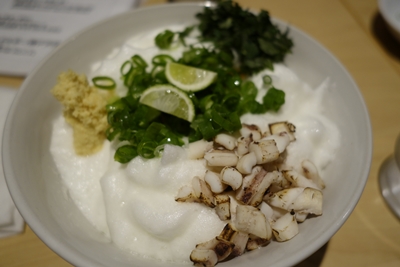 いただいてみると、、、うん!なかなか面白いたまごかけごはんでした!イカなども入っていて卵かけごはんというよりも新たなジャンルの食べ物のような感じですね!