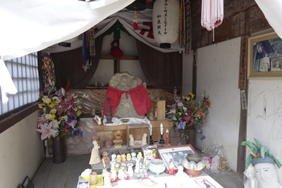 竹鶴さんの生家を出て、つづいて向かったのがかかえ地蔵に向かいました。お地蔵さんを抱えて、一つ願い事をお願いすると叶うといわれているんですよ〜。坂を上っていくと、5分くらいで到着です。かかえ地蔵さんはもう4回ほどかかえさせていただきましたが、今回も12月に生まれてくる赤ちゃんが元気に生まれてくれるようにお願いしておきました。