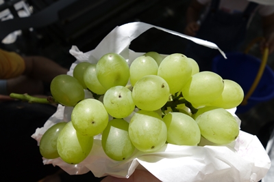 食べごろのぶどうを探しながら、一房はさみで取っていただきました!すると、、、ハニービーナス、、、甘い!ものすごく甘いです!おいしい〜!娘もおいしいおいしいと言ってたくさんたべていましたよ〜!