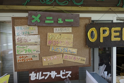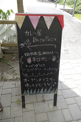 さて、さきほどの向島洋ランセンターの続きです。向島洋ランセンターさんに到着した際に案内板を拝見したのですが、その中に本格手作りカレー屋さんと書かれているのを見つけました。カレー屋さんがあるんだ〜!お昼はちょっと蕎麦屋さんに行こうとおもっていたのですが、予定変更して中のカレー屋さんでいただくことに。季節限定カレーとして辛口カレーがあるようですね。