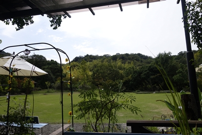 お店は中庭のそばにありました。オープンテラスになっていますよ〜!