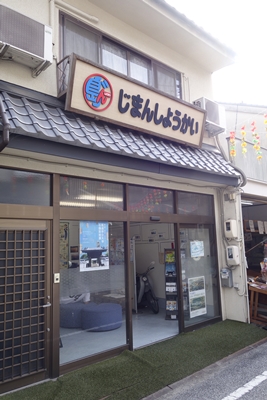 歩いていると干物などが売られているお店などいろいろなお店がありました。おそらく観光案内所なんだとおもいますが、”じまんしようかい”などというスペースも!これはおもしろいです。