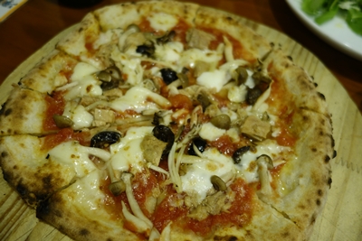 つづいて、マルゲリータにキノコとツナをトッピングしてみました!キノコの秋ですからね〜!キノコの風味が秋を感じさせてくれますね!