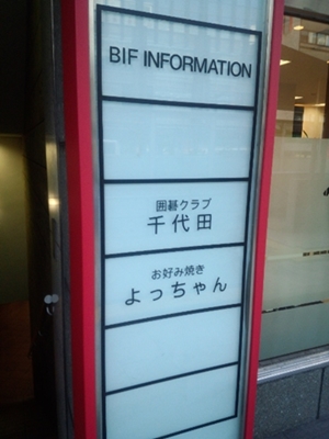 なんとそこにはよっちゃんが!!!お好み焼のよっちゃんがあるじゃないですか!こんなことってあるのか〜〜〜!あれれ?よっちゃんの上には、、、囲碁クラブ千代田さんが、、、し、し、渋い!渋いぜ〜〜〜!
