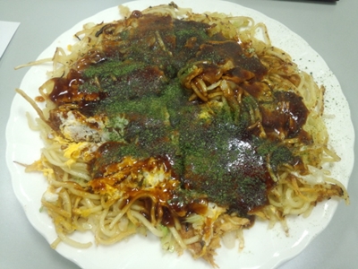 私たちも負けじと肉玉そばをお願いしました。友人は餅入り!しばらくまっていると、登場しました!オーソドックスなお好み焼!私の好きなタイプです!