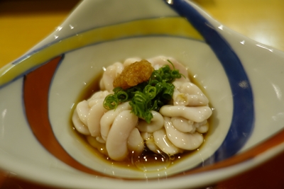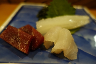 まずはいつもどおりのお料理をいただきました〜!先付けは白子!くぅ〜〜〜たまりませんね〜!つづいてお刺身!まぐろと白身とイカでした〜!