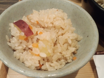 つづいて炊き込みご飯、、、つややかですね〜!今日はさつまいもが入っていました!こちらもやはりのおいしさです〜!こっそりお漬物のファンでもありまして、この日もいい塩梅でございました〜!