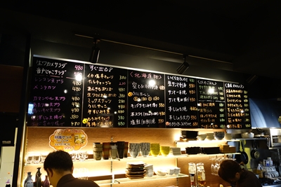 お店に入るといきなり焼酎などの瓶がお出迎え〜!立ち飲み屋さんではなかなか飲めそうにないような銘柄もおいてありますよ〜!値段ももちろんそこそこしますが、選択肢が広がっていいですね〜!