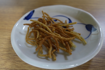 メニューをみながら今回は、もりそば、おろしそば、つけとろそばをお願いしました!新そばなので楽しみですね〜!揚げたそばをつまみます。