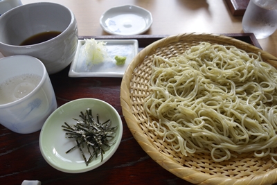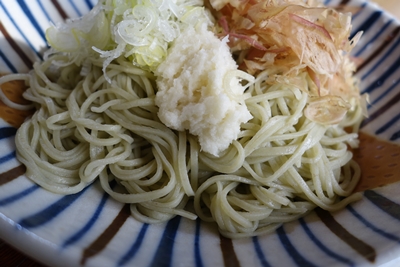 そこへお蕎麦が登場しました〜!うん、おいしそうです〜!私はおろしそばにしましたので、つゆをかけてしっかり混ぜていただきました。新そばの香りが口の中にほのかに広がります〜!おいしい〜!