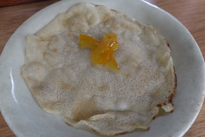 一通り頂いた後は、いつもの蕎麦クレープのサービスが!手作りはっさくマーマレードでいただきます。