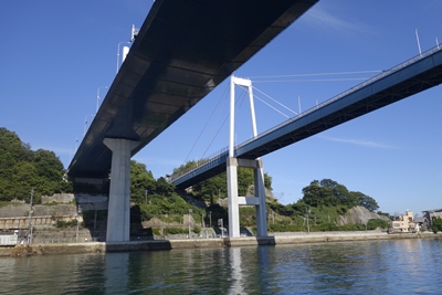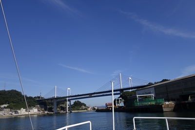クルージングが始まってしばらくすると、目の前に大きな橋が!これがしまなみ海道の新尾道大橋です!下をくぐるとかなりの迫力です!