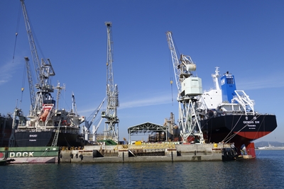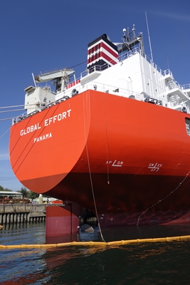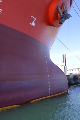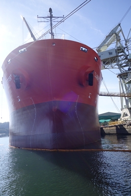 つづいて尾道造船の巨大な新造船を間近で見られました!停泊中の大型タンカーも目と鼻の先に!娘も大喜びです!