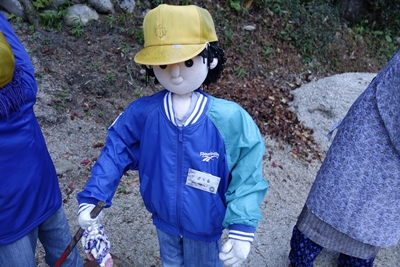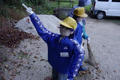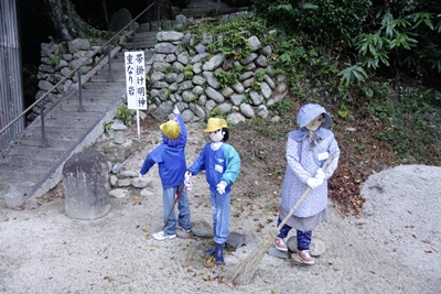 そんな岩があるとは知らなかったです!ということで車を止めて向かうとすぐ近くにありました!階段をのぼっていくようですね。道案内をかかしくんが、、、