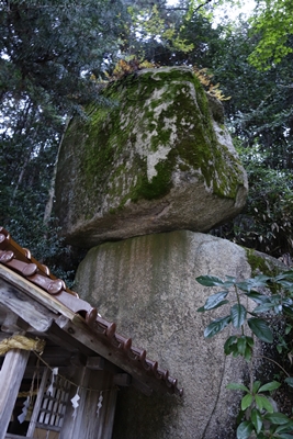 「大きな岩の上に大きな岩がのっかっていて、落ちそうで落ちない状態になっているらしいよ〜。なので受験生の方がこちらに参りに来る人がおおいんだって!」