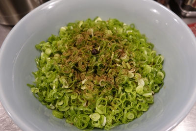 もうこの時点で口の中はよだれでいっぱい!早く食べたい〜〜〜!ということで登場しました!汁なし担担麺!う〜ん、山椒の香りがすばらしいですね〜!トッピングでねぎ盛りにしたのでねぎもたっぷり〜!しっかり混ぜていただきます〜!