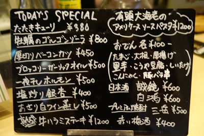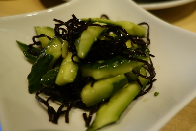 まずは生ビールをいただきながら、たたきキュウリをいただきます。このたたきキュウリ、ほんと秀逸です!昆布と一緒に和えてあるのですが、これがほんとにおいしい〜!お酒がすすむすすむ!家庭でもすぐに真似できそうなのですが、自分で作ってみてもなかなかおいしくできません。さすがはプロの技ですね!