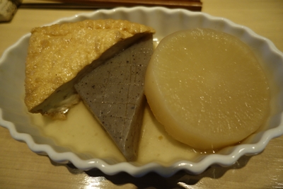 つづいてこの季節には欠かせないおでん!こっそりおでんが大好きなんですよね〜!とくにすきなのはこんにゃく!こんにゃく大好きなんです〜!いただいてみるといい出汁でていますね〜!おいしい〜!大根もほどよく歯ごたえを残してくれているので、食感も楽しめました〜!