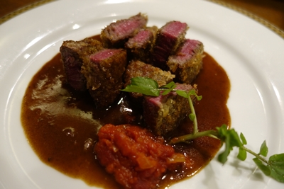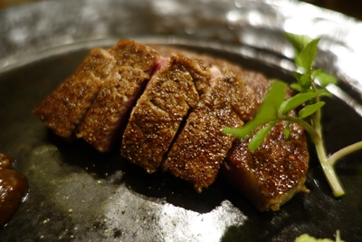 つづいてヒレ肉を鉄板焼でお願いしたので一緒にワインをお勧めでお願いしました!おいしいワインですね〜、さすがです!ヒレ肉は肉自体のおいしさを感じることができました!ほどよい柔らかさもさすがでした!