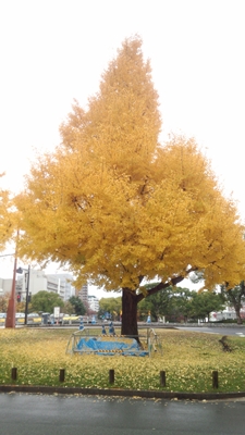 そうそう、黄金に輝く大イチョウは見ることができませんでしたがパークサイドホテル広島から徒歩2分ほどの平和大通りにあるまあまあ大きなイチョウの木が黄金絶頂期を迎えていましたよ!